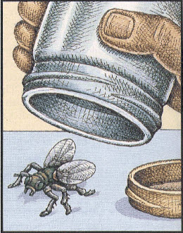 قم بعد ذلك باصطياد 4 ذبابات ويستحب أن تكون من الحجم الكبير، وذلك باستعمال أية علبة قديمة بالمنزل.